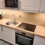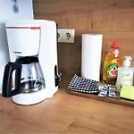 Een ingerichte kitchenette met een magnetron, een waterkoker en een koelkast is aanwezig in dit appartement, samen met koffie- en theevoorzieningen. Magdeburger Strasse bushalte is een paar momenten van dit 1-badkamer appartement.